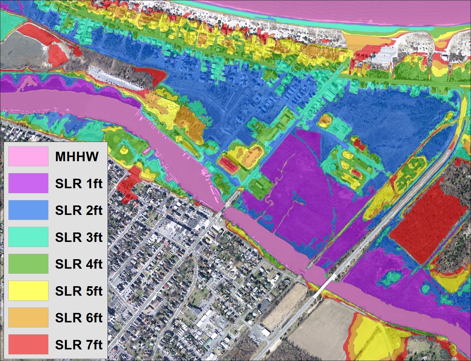 Description: <DIV STYLE="text-align:Left;"><DIV><P><SPAN>This geodatabase contains a series of state-wide SLR coastal inundation maps corresponding to water surfaces from the mean higher-high water (MHHW) level to 7 feet above MHHW, in 1-foot increments. Development of the bathtub-model inundation maps was based on a high-quality, 1-meter bare earth Digital Elevation Model (DEM) derived from the 2014 state-wide LiDAR acquisition. Elevated roadways and bridges not represented in the bare earth DEM were identified, and manually assessed for inundation for each SLR scenario. Additional documentation can be found at http://www.dgs.udel.edu/projects/determination-future-sea-level-rise-planning-scenarios-delaware</SPAN></P></DIV></DIV>